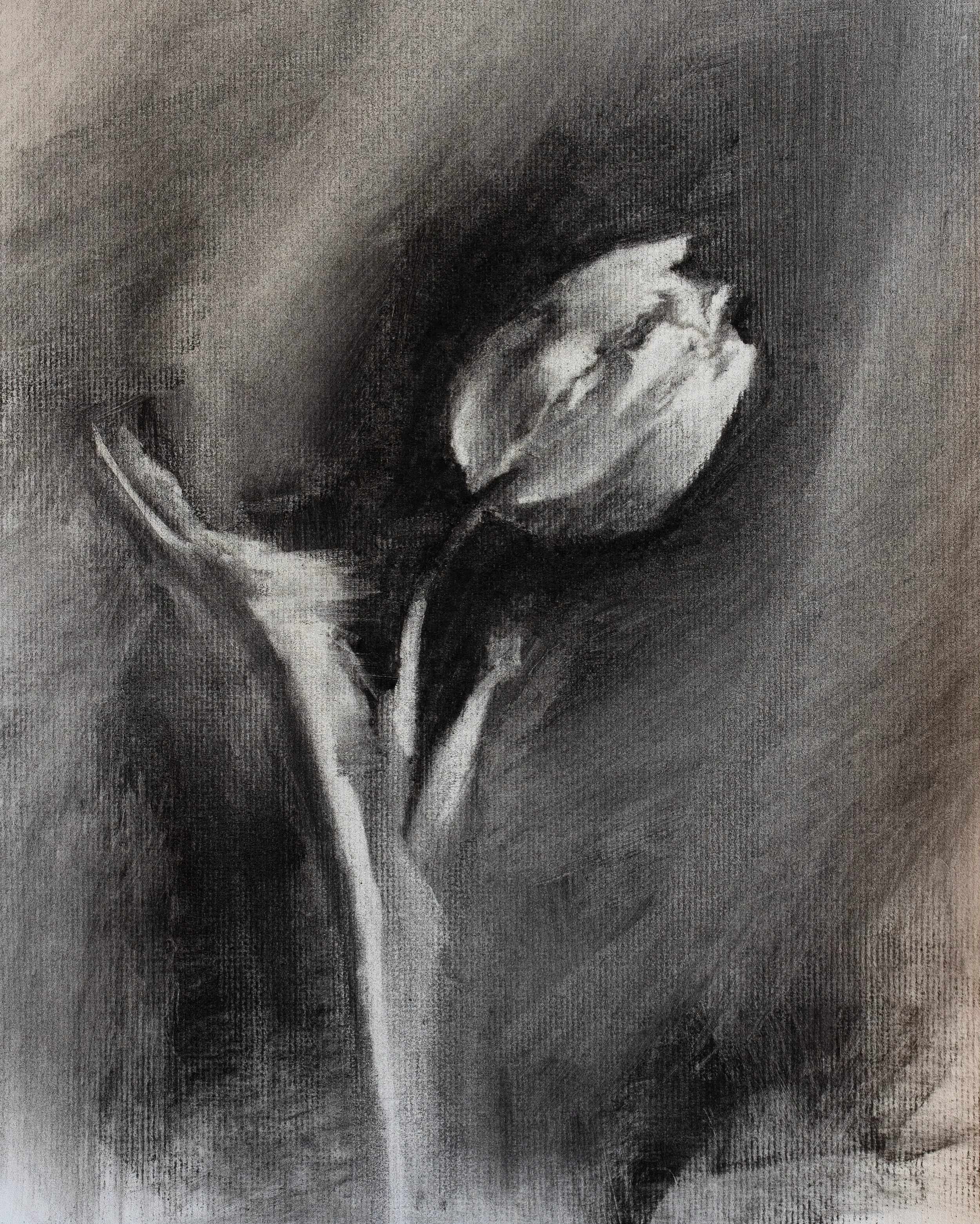 Tulip. 11" x 17" Charcoal on Paper. 2024. Available.